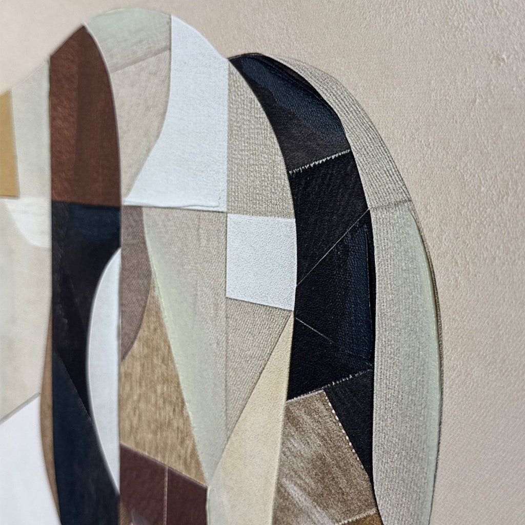La stesura artigianale a rilievo dona profondità e una dimensione tattile che richiama i preziosi intarsi lignei, trasformando l’opera in un raffinato elemento di design, perfetto per ambienti moderni ed eleganti.