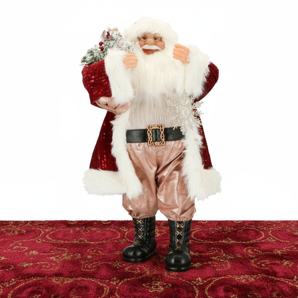 ⨠Porta in casa il calore e la magia delle feste con questo Babbo Natale decorativo in elegante abito rosso impreziosito da dettagli dorati.
