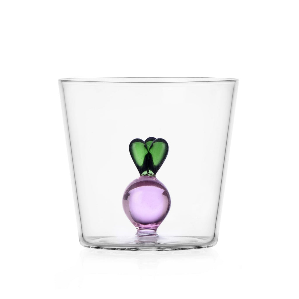 Un dettaglio che sorprende, ogni giorno. Il bicchiere in vetro borosilicato della collezione Vegetables firmata Ichendorf Milano racchiude un piccolo ortaggio colorato al suo interno, realizzato a mano con cura artigianale.