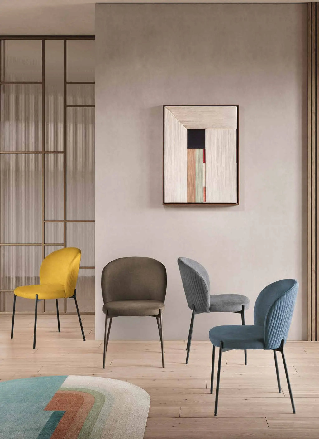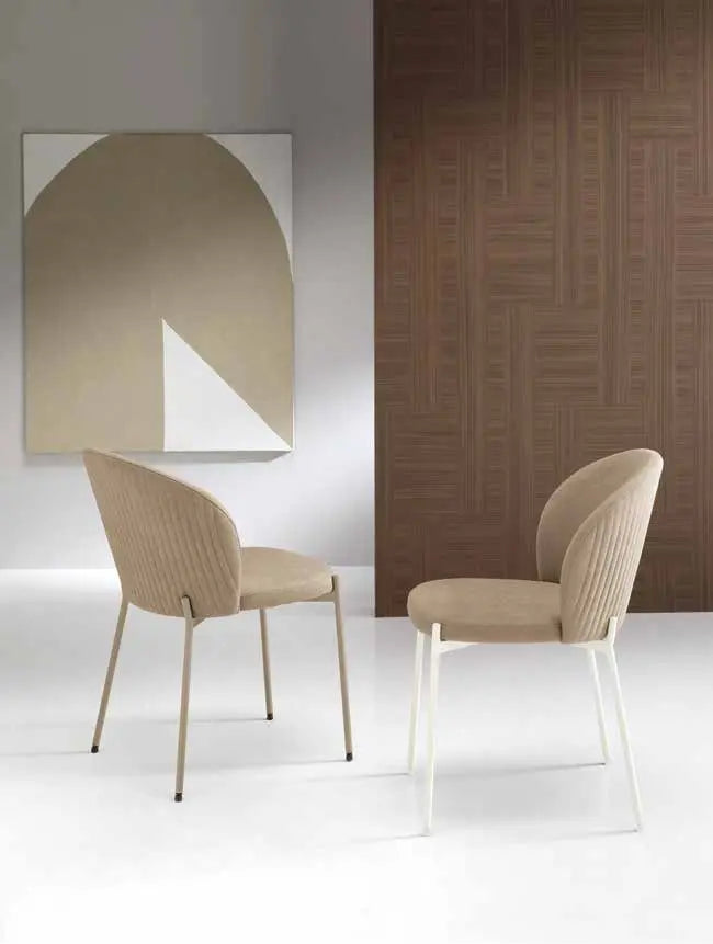 Design, comfort ed eleganza si incontrano nella sedia Meggie di Capodarte, un complemento perfetto per ambienti raffinati e contemporanei. Le sue linee morbide e pulite si uniscono a un dettaglio sartoriale esclusivo: la lavorazione impunturata a righe verticali sul retro dello schienale, che aggiunge un tocco di stile discreto ma distintivo.