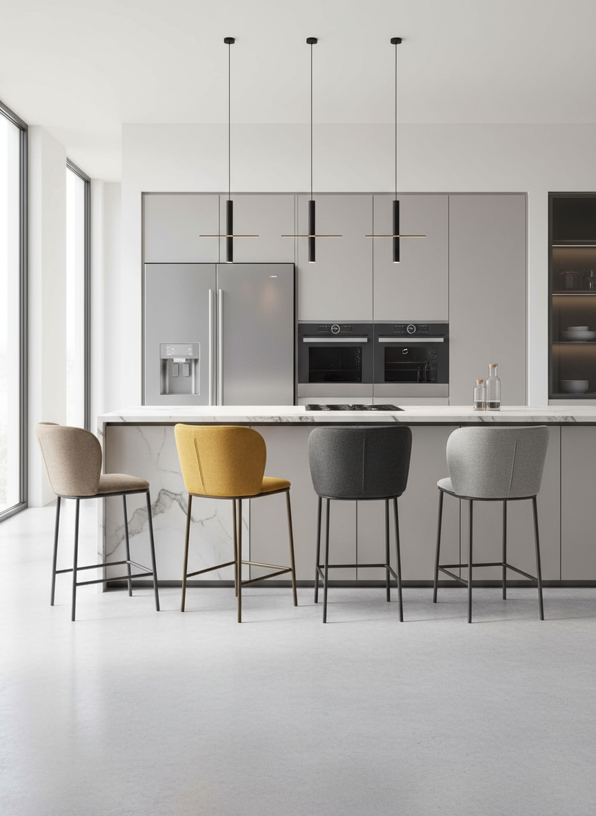 Elegante, moderno e confortevole, lo sgabello Evissa di Capodarte è la scelta ideale per completare la tua cucina o living con uno stile raffinato. Le sue linee morbide e contemporanee valorizzano gli ambienti più ricercati, mentre la seduta imbottita e il poggiapiedi assicurano comfort e praticità ogni giorno. Perfetto per isole, penisole e banconi moderni.