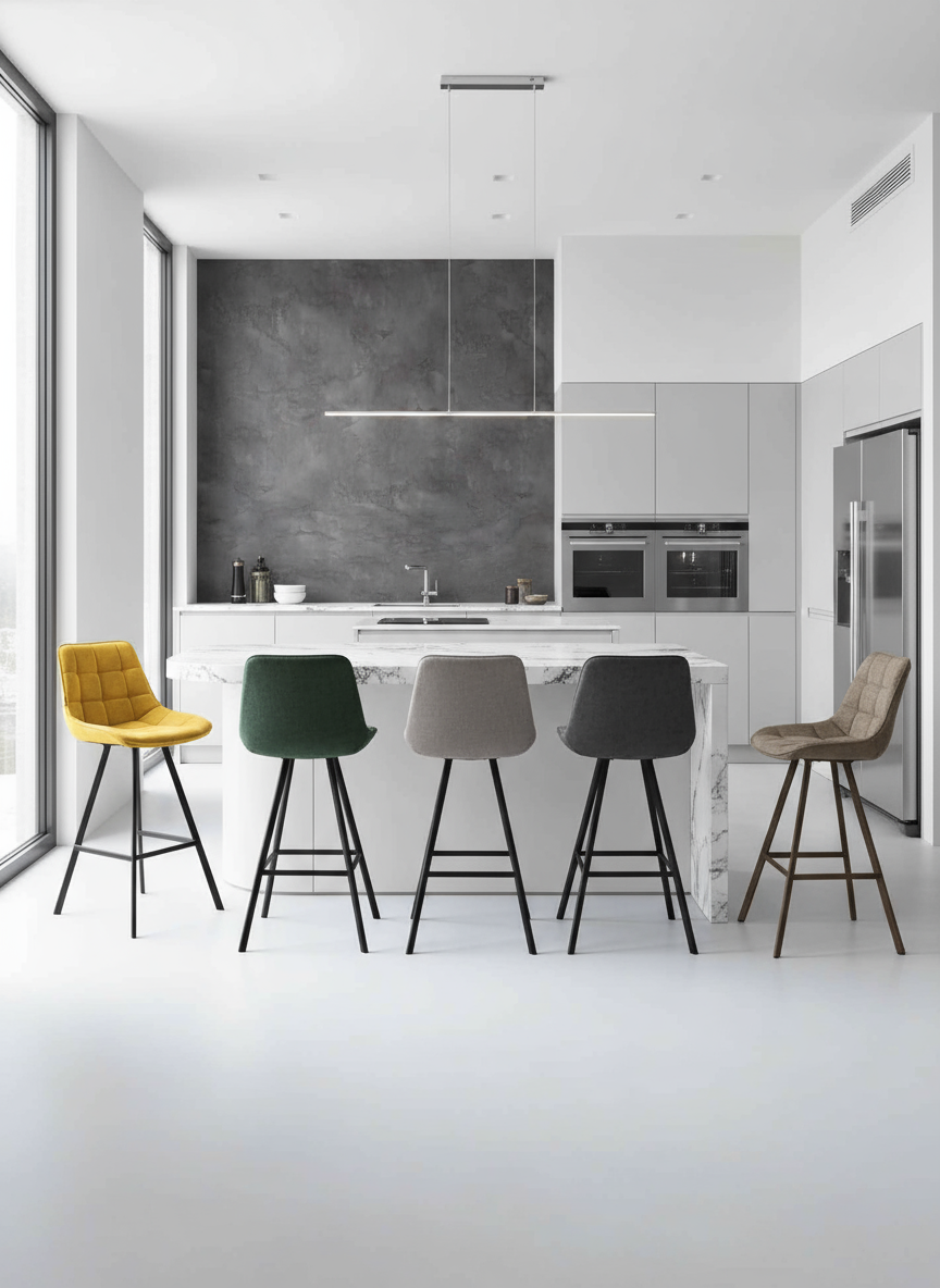 Moderno, elegante e confortevole: lo sgabello Friedic di Capodarte è la scelta ideale per completare cucine con isola, penisole e ambienti living dal carattere contemporaneo. La seduta imbottita e le linee morbide donano comfort e raffinatezza, mentre la struttura in metallo garantisce stabilità e durata nel tempo.
