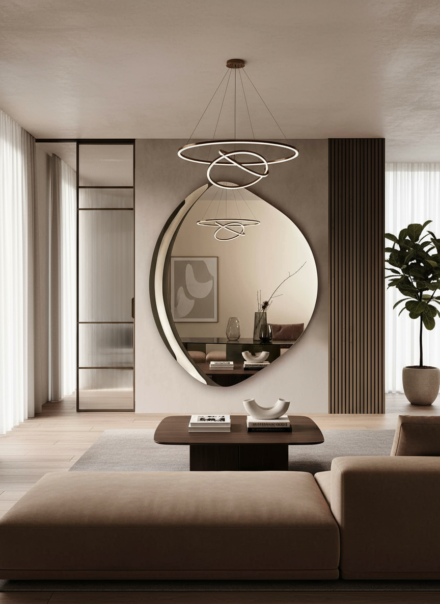 La specchiera Acai di Capodarte cattura lo sguardo come un vero elemento scultoreo da parete: sinuosa, luminosa e materica, è pensata per valorizzare gli ambienti della casa con un’eleganza contemporanea.