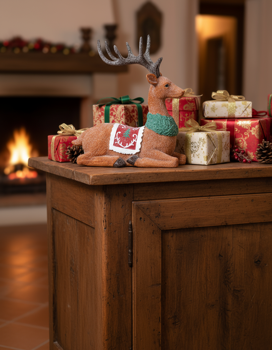 Porta allegria e stile nelle tue decorazioni natalizie con il cervo multicolor Timstor, un decoro vivace e contemporaneo perfetto per chi ama un Natale originale e ricco di personalità. Realizzato in polyresina, unisce leggerezza e resistenza, diventando un elemento scenografico ideale per mensole, consolle o allestimenti natalizi.