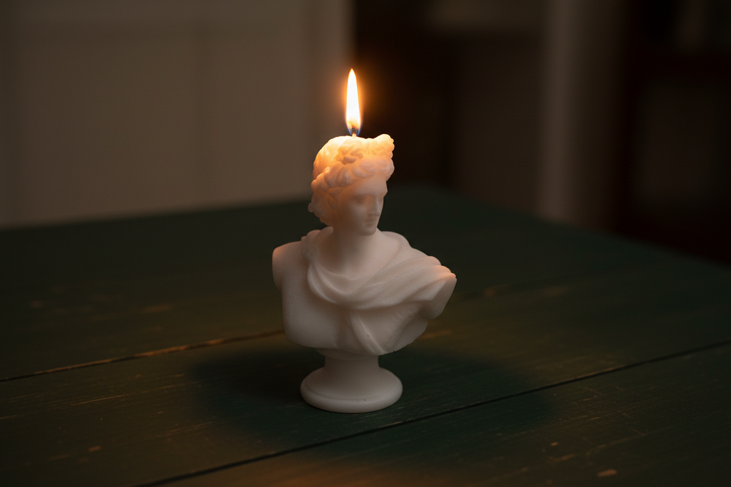 Le forme scultoree del busto, abbinate alla luce calda della candela, creano un’atmosfera unica, perfetta per chi ama dettagli di design ricercati e fuori dal comune.