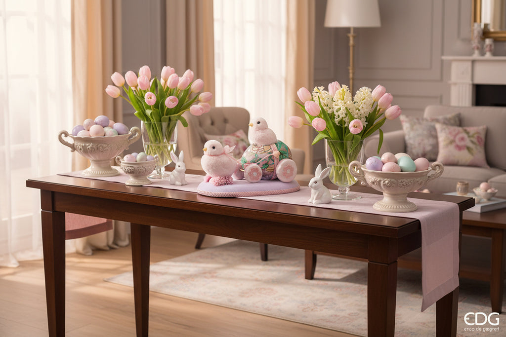 Il Decoro Pulcino Carretto EDG Enzo De Gasperi è una decorazione tenera e raffinata, ideale per aggiungere dolcezza, colore e un’atmosfera festosa agli ambienti. Un piccolo elemento scenografico che conquista al primo sguardo.