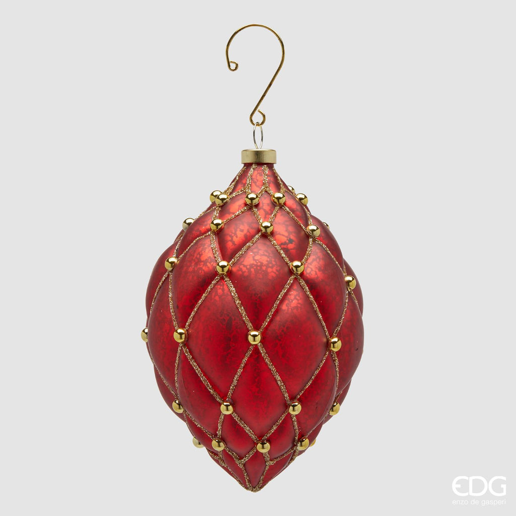 Disponibile in due varianti cromatiche – rosso rubino e verde smeraldo – questo ornamento si adatta perfettamente sia a un albero di Natale in stile tradizionale che a composizioni più moderne e ricercate.