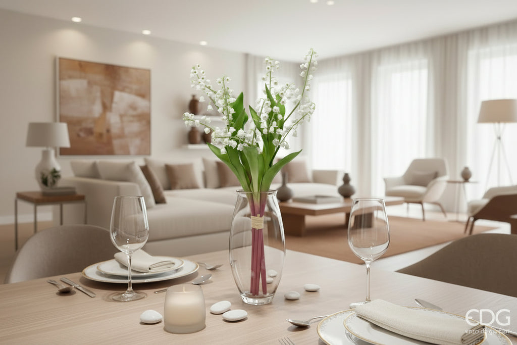 Il mazzo di Mughetto con foglie EDG Enzo De Gasperi è una decorazione floreale dal fascino delicato e senza tempo, ideale per portare negli ambienti freschezza, eleganza e un tocco naturale in ogni stagione.