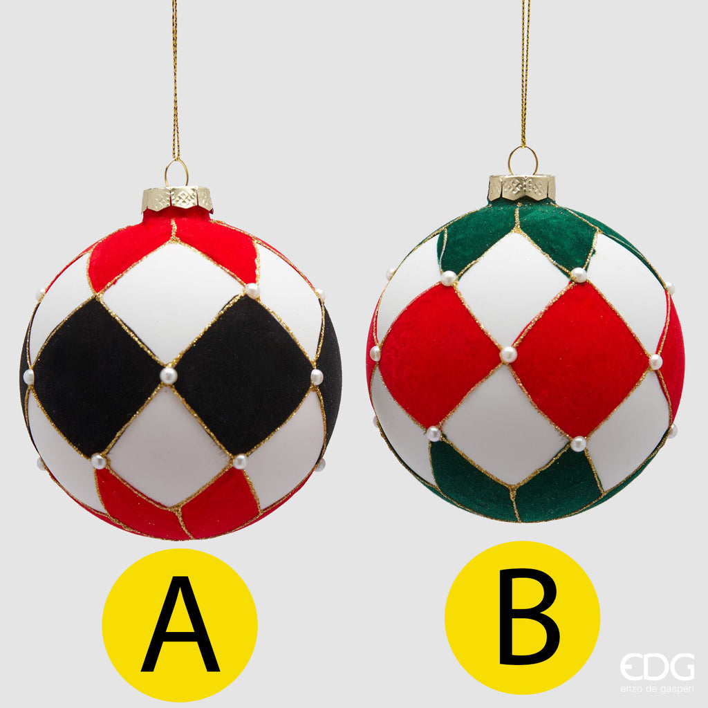 š“āŖš¢ Palla Decorativa Stile Scacchi in Vetro ā Enzo De Gasperi - Design geometrico e colori festivi per un Natale di classe