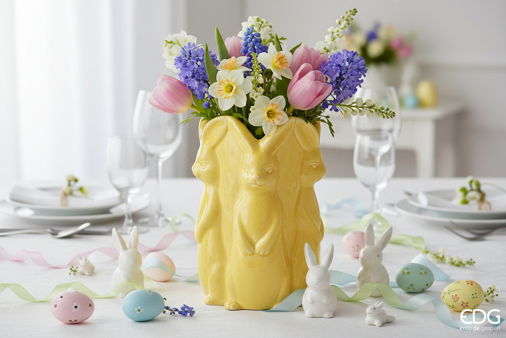 Il Vaso Conigli Easter è pensato per celebrare la Pasqua con eleganza, grazie ai delicati dettagli a tema coniglietto che donano all’ambiente un’atmosfera luminosa e accogliente.