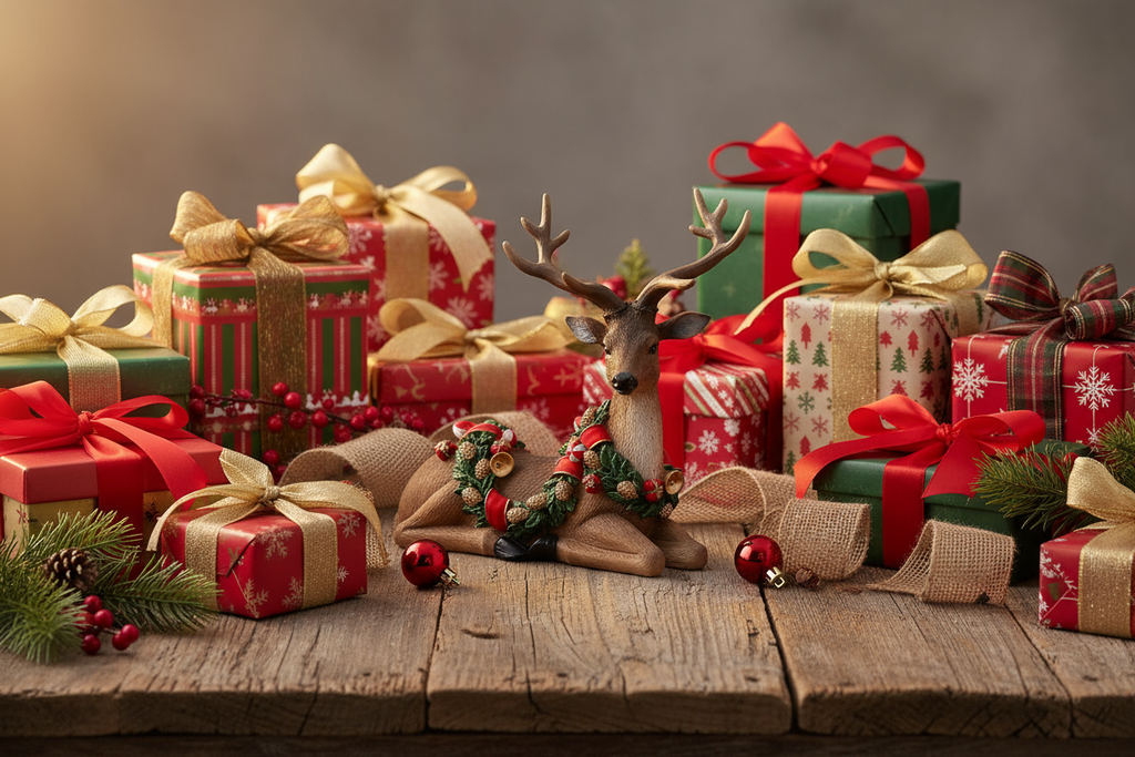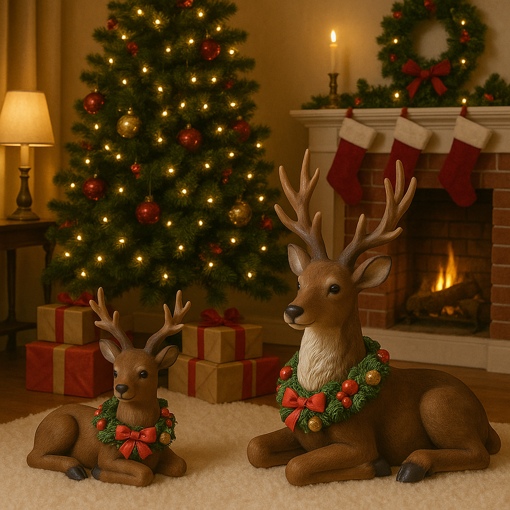 š” Consiglio di Romano Mobili: posiziona entrambi i cervi vicini a un centrotavola con pigne, rami dāabete e luci calde per creare una scenografia natalizia elegante e accogliente.