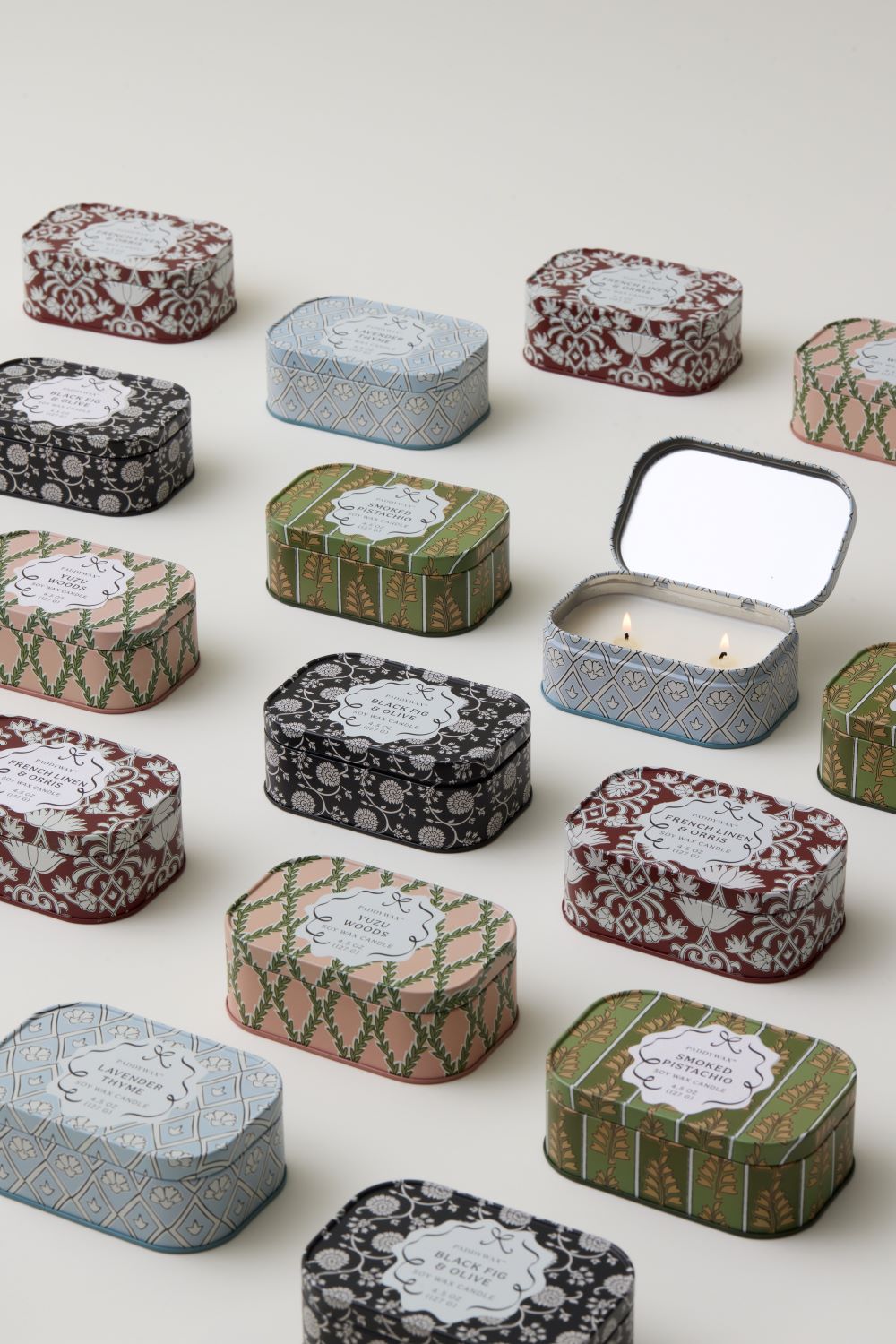 🕯️🌸 Paddywax | Candela “Cherie” 4,5 oz/127 g – Profumo, eleganza e colore in latta stampata