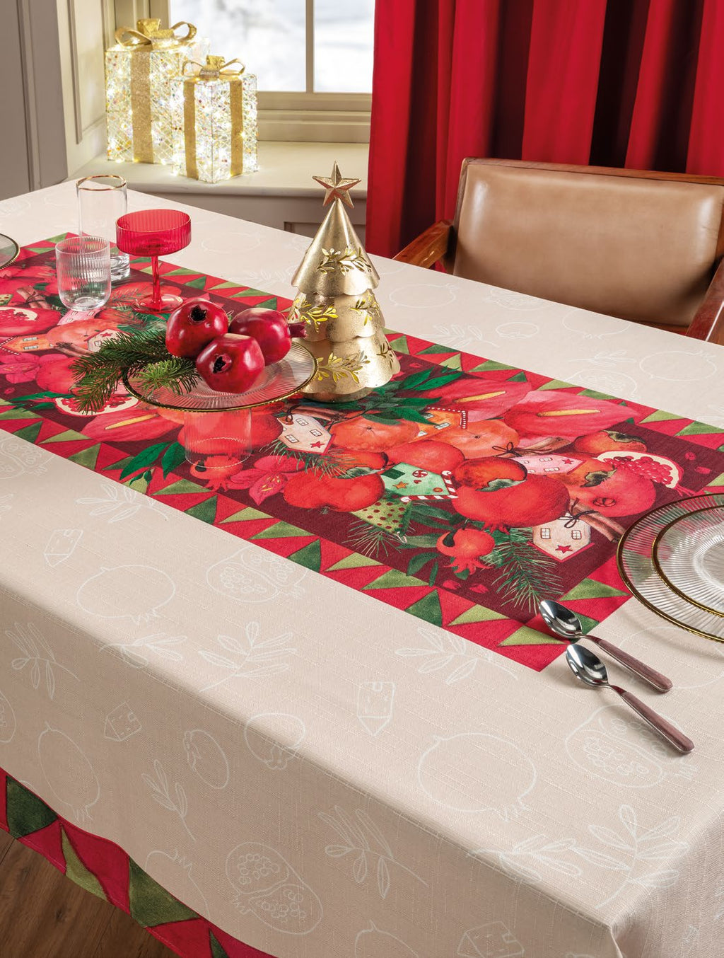 Rendi la tua tavola natalizia un vero angolo di eleganza con questo runner decorato con raffinati melograni, simbolo di abbondanza e armonia. Perfetto per dare un tocco festoso e ricercato anche alle tavole più semplici.