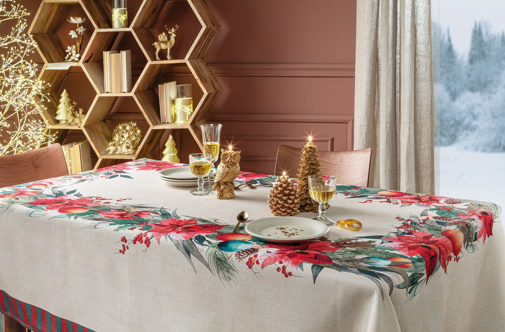 Rendi la tua tavola protagonista delle feste con questa elegante tovaglia decorata con Stelle di Natale, simbolo di gioia e tradizione. Perfetta per creare un’atmosfera accogliente e raffinata in ogni momento conviviale.