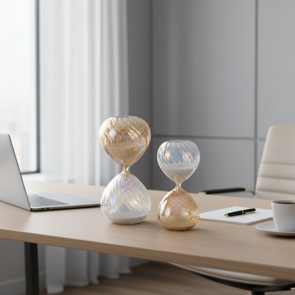 La clessidra Stripe di Mascagni unisce fascino decorativo e funzionalità in un oggetto che cattura lo sguardo. Realizzata in vetro soffiato con dettagli a righe, è perfetta per impreziosire una libreria, un mobile d’ingresso o una scrivania. Disponibile in due altezze, misura con precisione 45 o 60 minuti.