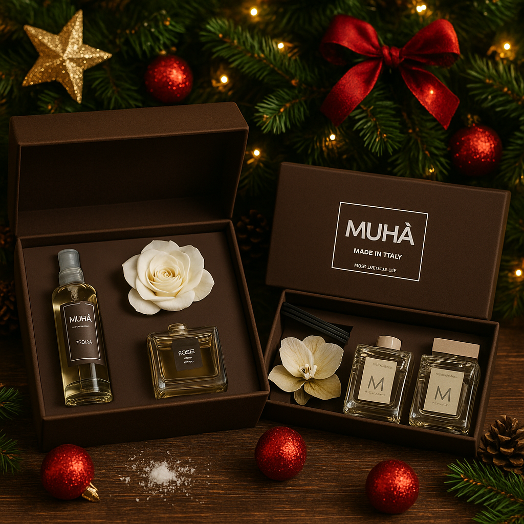 La Confezione Regalo Muhà è pensata per trasformare ogni ambiente in un luogo di benessere e bellezza. Un’idea regalo sofisticata che unisce estetica e profumazione di alta qualità.