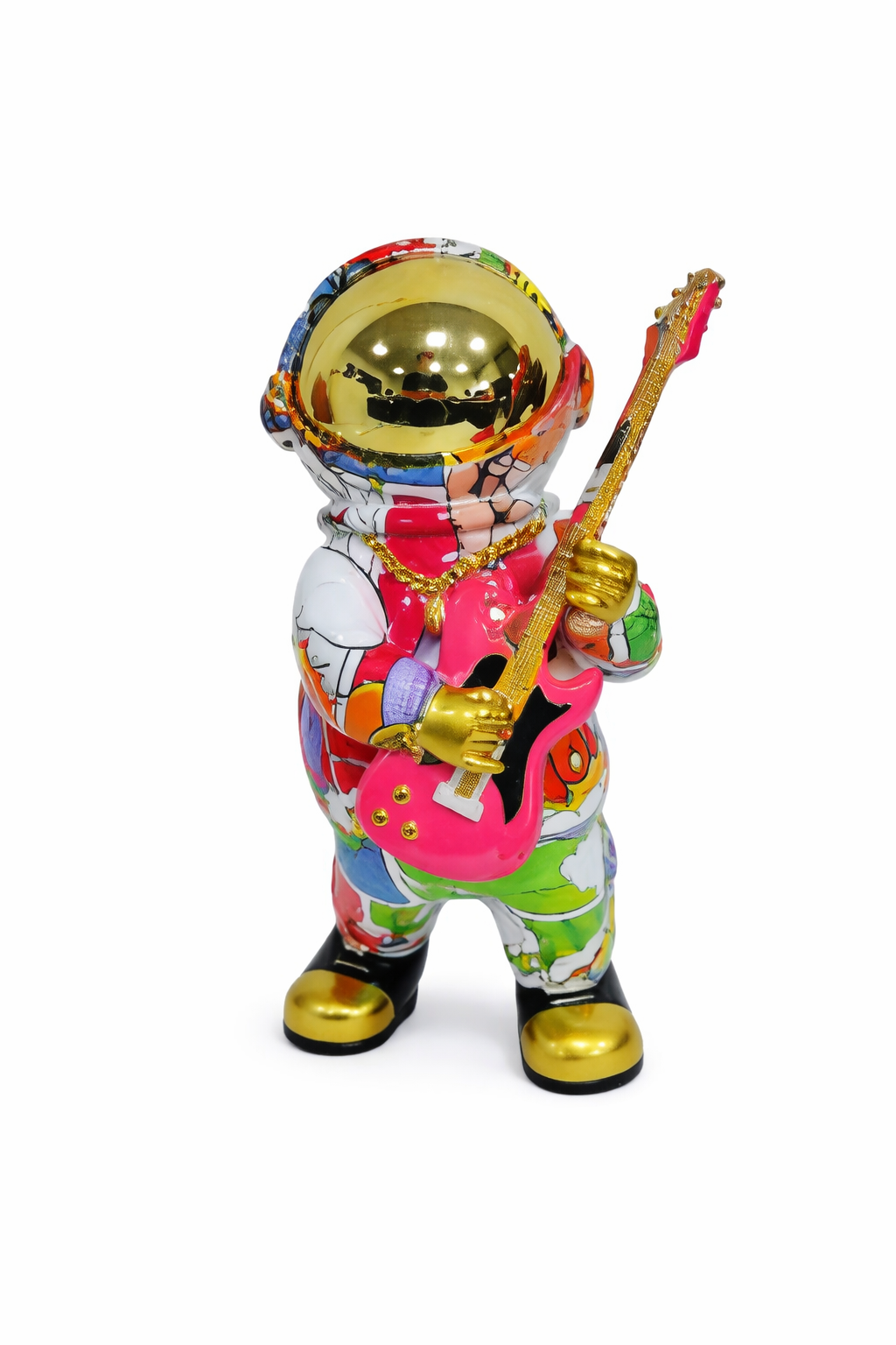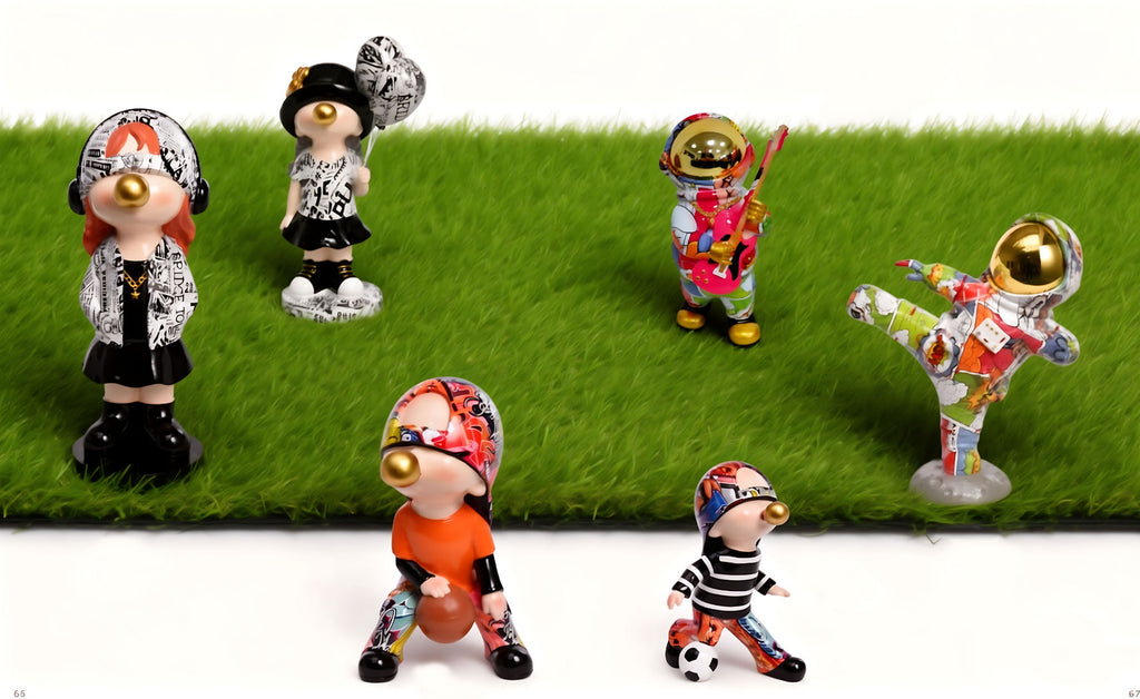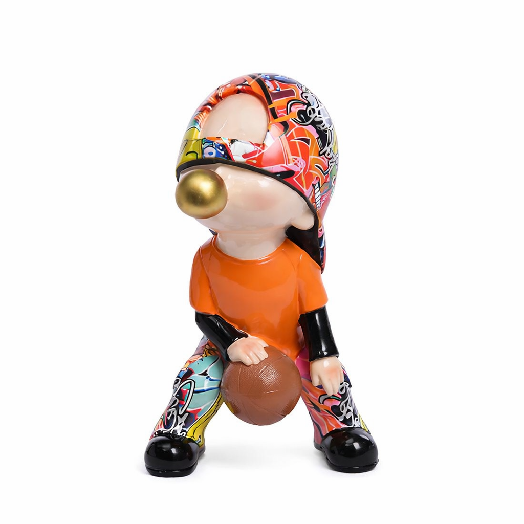 Realizzata in poliresina con finitura multicolore, questa scultura si distingue per il suo stile pop vivace e creativo. Perfetta per living moderni, studi professionali o camerette dal carattere dinamico, aggiunge un tocco artistico originale e fuori dagli schemi.