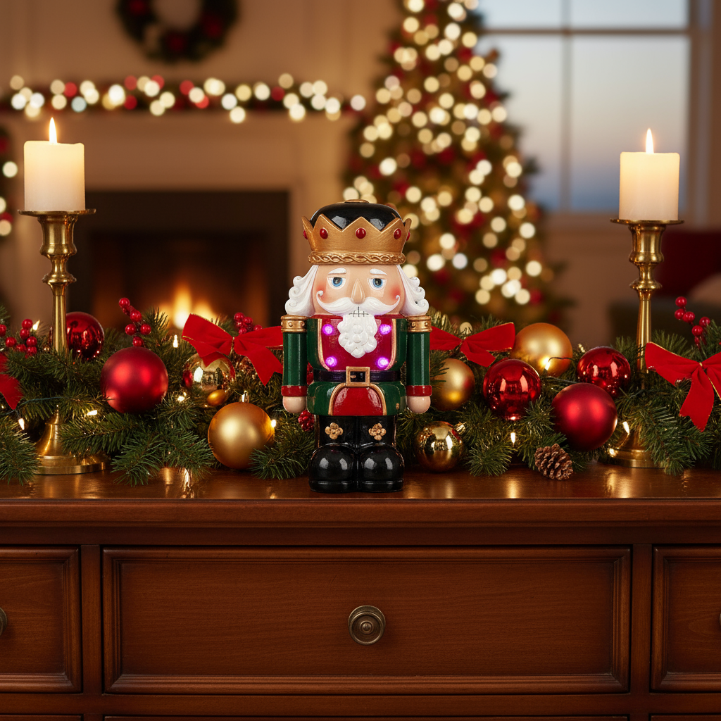 ✨ Un piccolo grande classico del Natale prende vita con questo elegante Schiaccianoci, arricchito da dettagli luminosi.