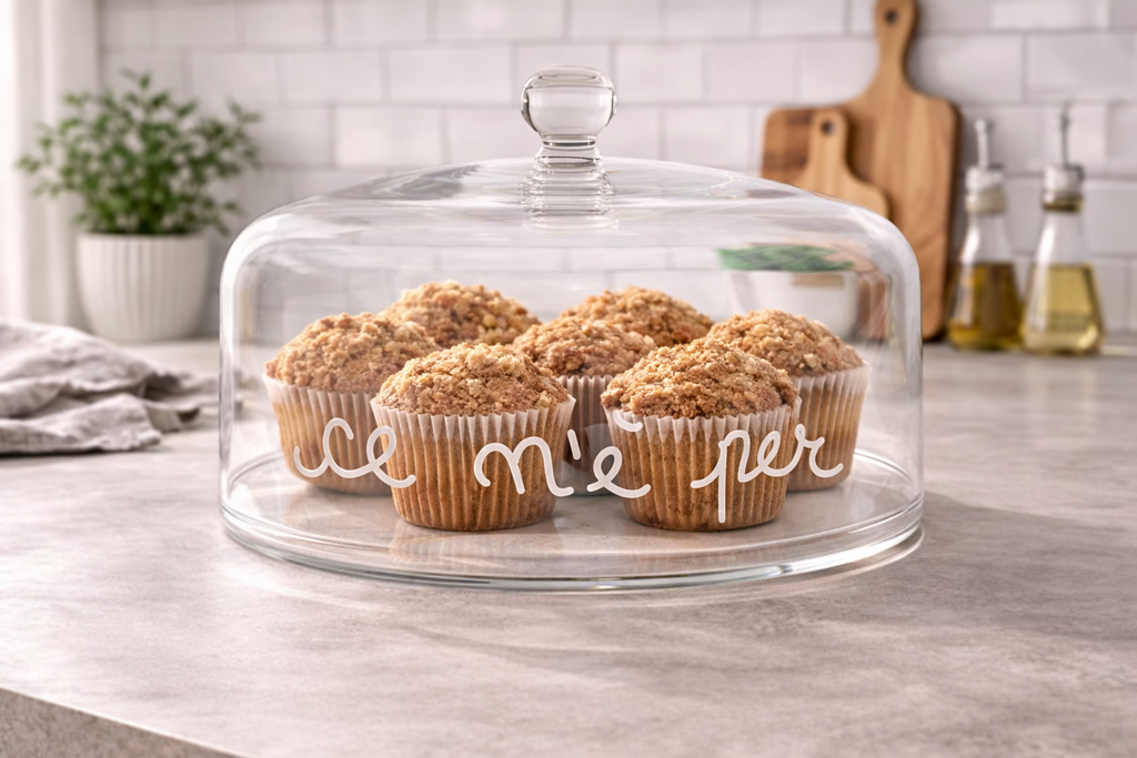 Campana per dolci in vetro con decoro “Ce n'è per Tutti”