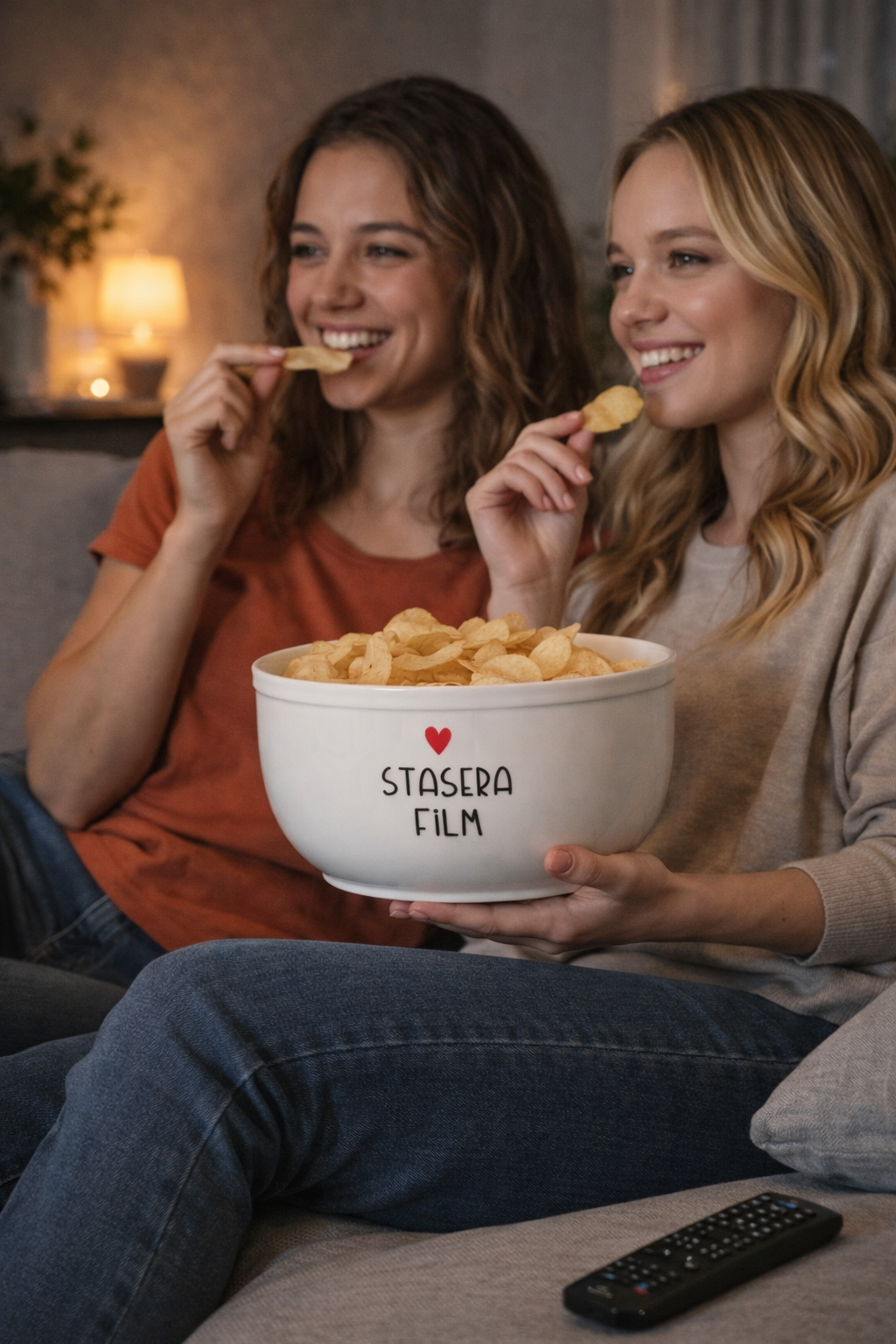 Il design semplice ed elegante è arricchito dal decoro “Stasera Film”, che dona un tocco ironico e moderno alla tavola, rendendo ogni momento più divertente e informale. Un complemento perfetto per chi ama condividere piccoli piaceri quotidiani con stile.