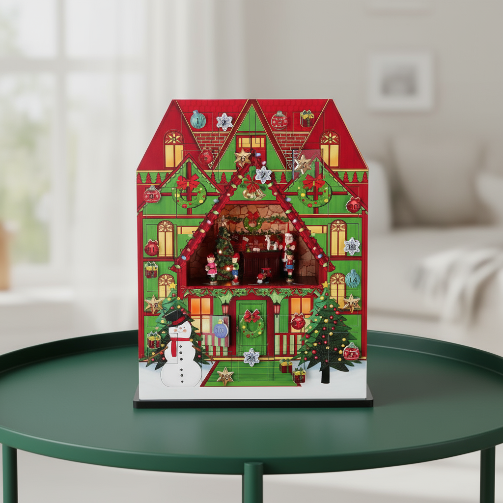Con le sue dimensioni generose di 37 x 10,5 x 50 cm, questo calendario diventa il cuore pulsante delle tue decorazioni natalizie.