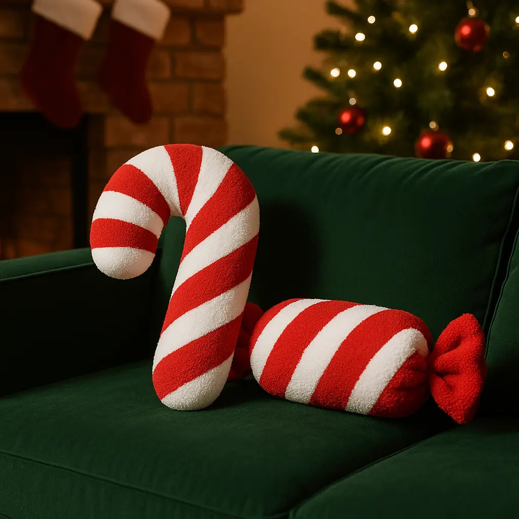 Aggiungi un tocco dolce e festoso alla tua casa con il Cuscino Natalizio a forma di Caramella firmato Timstor.