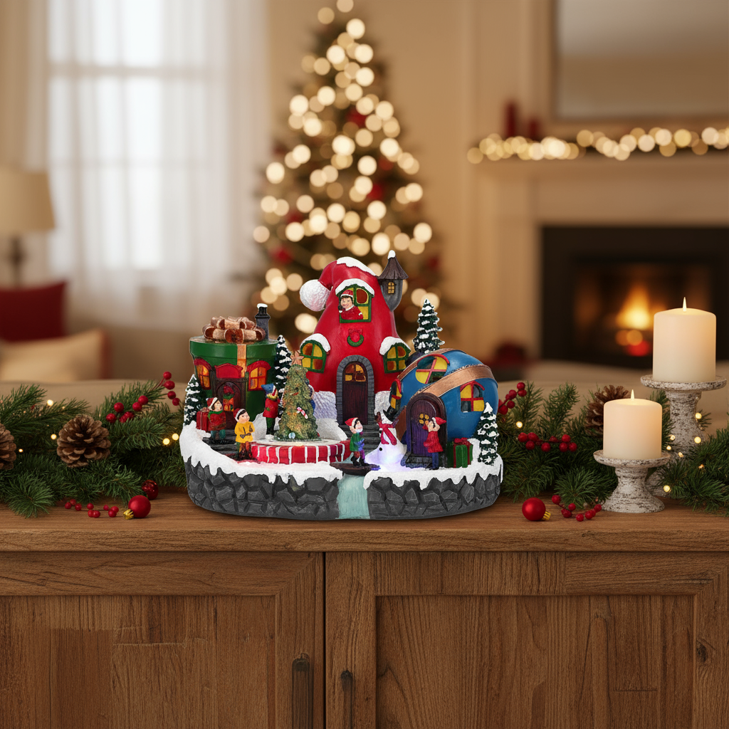 Questo Villaggio Natalizio ti farĆ immergere completamente nella gioia delle festivitĆ , grazie agli Elfi che danzano intorno all'albero mentre le luci Led brillano con splendore.