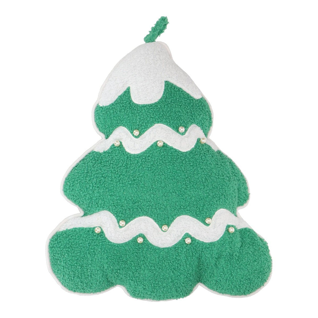 Con il suo design allegro a forma di albero, nei toni classiciĀ verde e bianco, ĆØ il complemento perfetto per arricchire divani, letti o angolini natalizi con stile e morbidezza