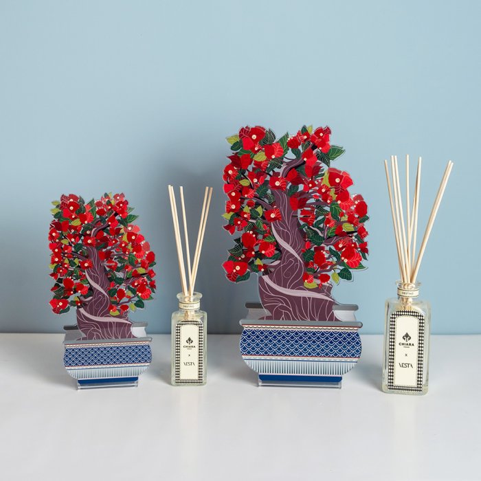 Disponibili nei modelli Bonsai Gelsomino Bianco e Bonsai Bouganville Rosso, questi diffusori profumati sono vere e proprie sculture di design: colorate, luminose, emozionanti.
