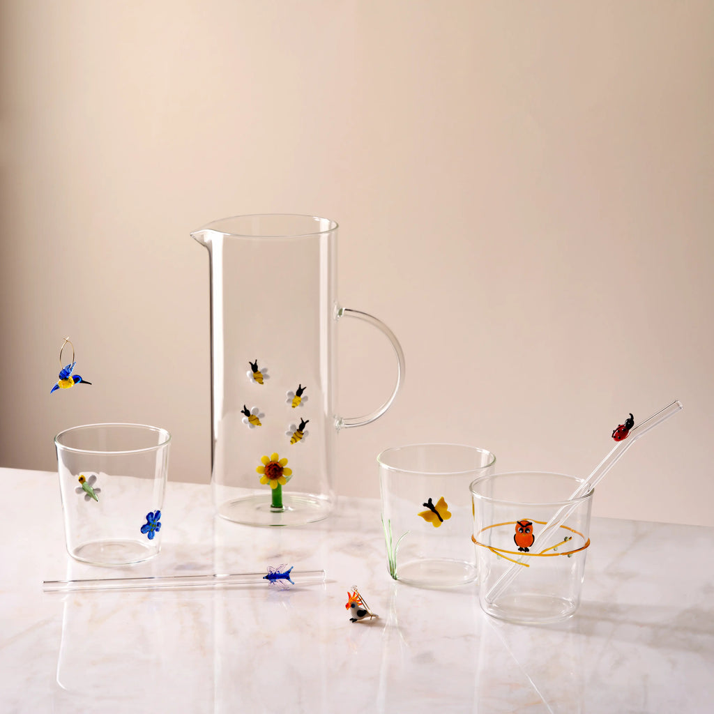 Realizzati in vetro decorato, questi bicchieri si caratterizzano per il decoro colorato che raffigura animali, che crea un effetto visivo dinamico e moderno. Perfetti per acqua, succhi o cocktail, aggiungono un tocco creativo alla tavola senza rinunciare all’eleganza.