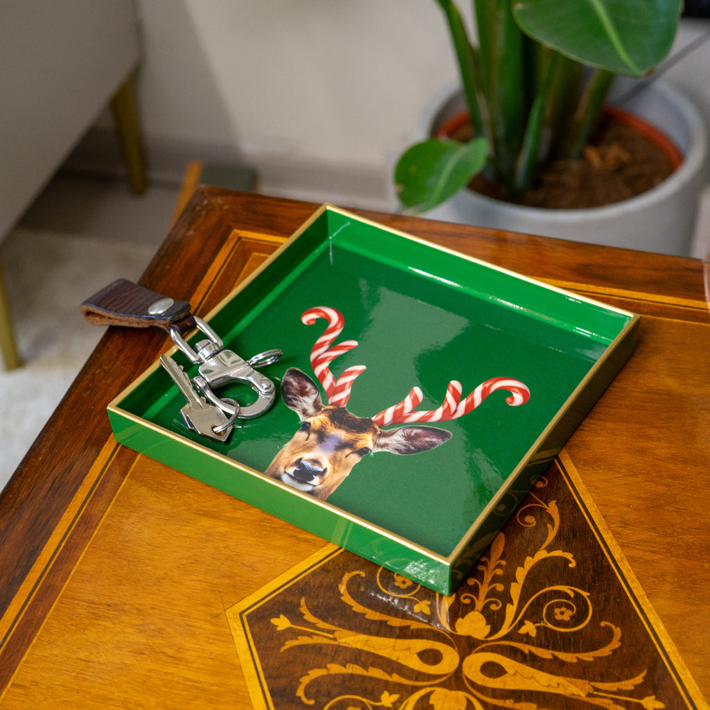 IlĀ vassoio svuota tasche natalizio decorato WD Lifestyle ĆØ lāaccessorio perfetto per aggiungere un tocco festoso e funzionale a ingressi, comodini o mobili da soggiorno durante le feste.